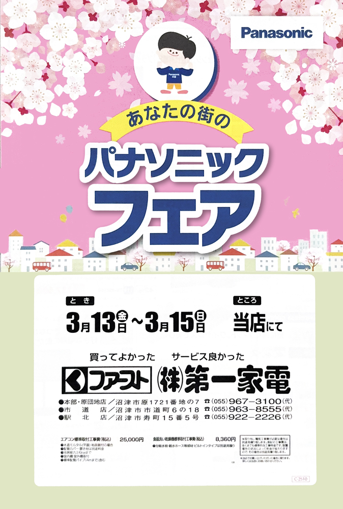 さて第一家電 ではパナソニックフェアが始まりますよ♪